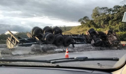 O motorista não se feriu. Veículos de apoio da Autopista Fernão Dias e da Polícia Rodoviária Federal (PRF) compareceram ao local. Os perfis metálicos ficaram espalhados em um terreno de uma fazenda que se localiza no trevo da BR.