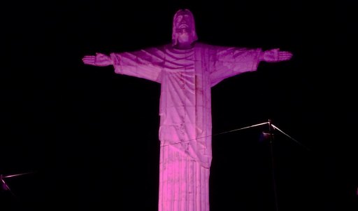 A imagem, que fica no ponto mais alto de Luminárias, ganhou uma iluminação rosa para chamar a atenção sobre os riscos do câncer de mama, o câncer que mais acomete as mulheres de todo o mundo.