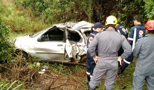 carro, segundo a Polícia Rodoviária Federal (PRF), derrapou em uma curva, saiu da pista de rolamento e bateu em um eucalipto.