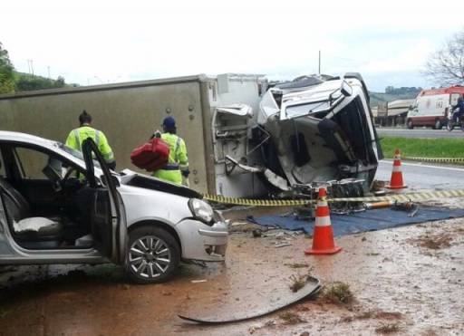 Um grave acidente matou três pessoas na tarde desta sexta-feira, dia 6, no Sul de Minas, o acidente envolvendo um caminhão e um automóvel aconteceu no km 891, na rodovia Fernão Dias, em Cambuí. O caminhão carregado com produtos lácteos seguia sentido São Paulo e, por razões ainda desconhecidas, o motorista do caminhão perdeu o controle direcional, atravessou o canteiro divisor e invadiu a pista contrária, batendo em um automóvel. O caminhão, após a colisão, ainda tombou.
