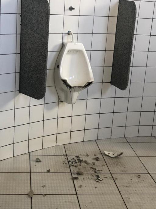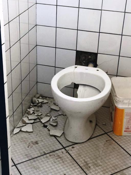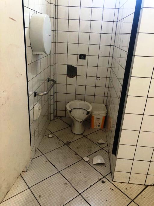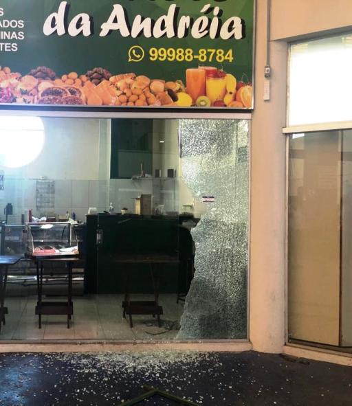 Com um tijolo na mão, ele quebrou o vidro de uma das lojas, entrou no banheiro e quebrou vasos sanitários, mictórios, vidros das janelas e, depois, na rua, quebrou dois automóveis que estavam estacionados na frente do Mercado.