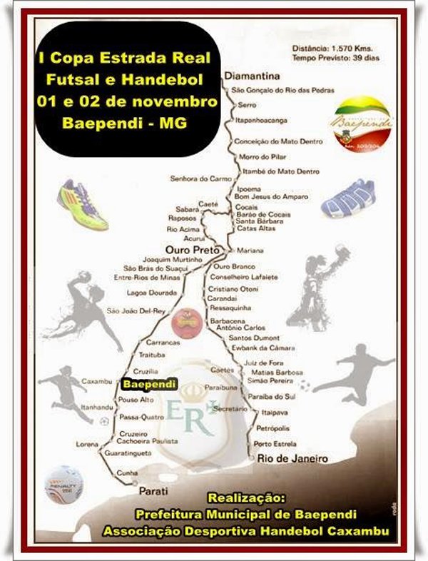 A 1ª Copa Estrada Real está sendo realizada pela Associação Desportiva Handebol de Caxambu (ADCH), em parceria com a Prefeitura Municipal de Baenpendi.